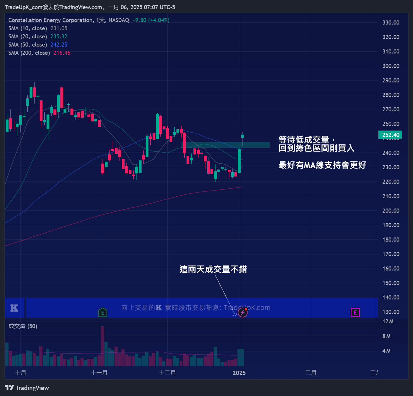 這隻就是電力股了,從圖中可以看到,上週四週五連續兩天有挺不錯的成交量和漲幅,雖然之前圖形看起來差一點,但這兩天的漲幅已經收復了它之前隨大盤下跌的失地,並站上所有MA線之上(大盤還沒收復失地哦,它領先了),再看電力核能類板塊最近有被重視的情況。具體買入時機參考看截圖。