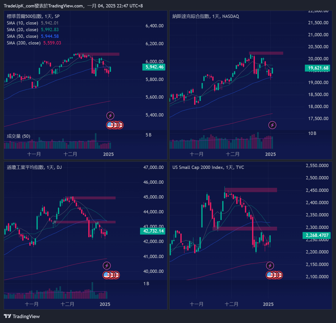 我不知道,K 不是預言家。我們只分析我們能看到的:從圖表來看,四大指數的上方仍有各條移動平均線的阻力以及自身高位的阻力。以 K 的風格來說,我不會去搶這種反彈,風險過高。