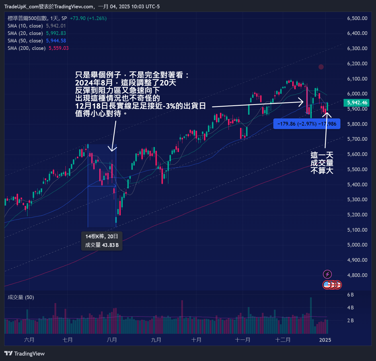 目前美股已明顯進入調整期,但調整時間還不夠,現在也才 2 週(10天)而已。